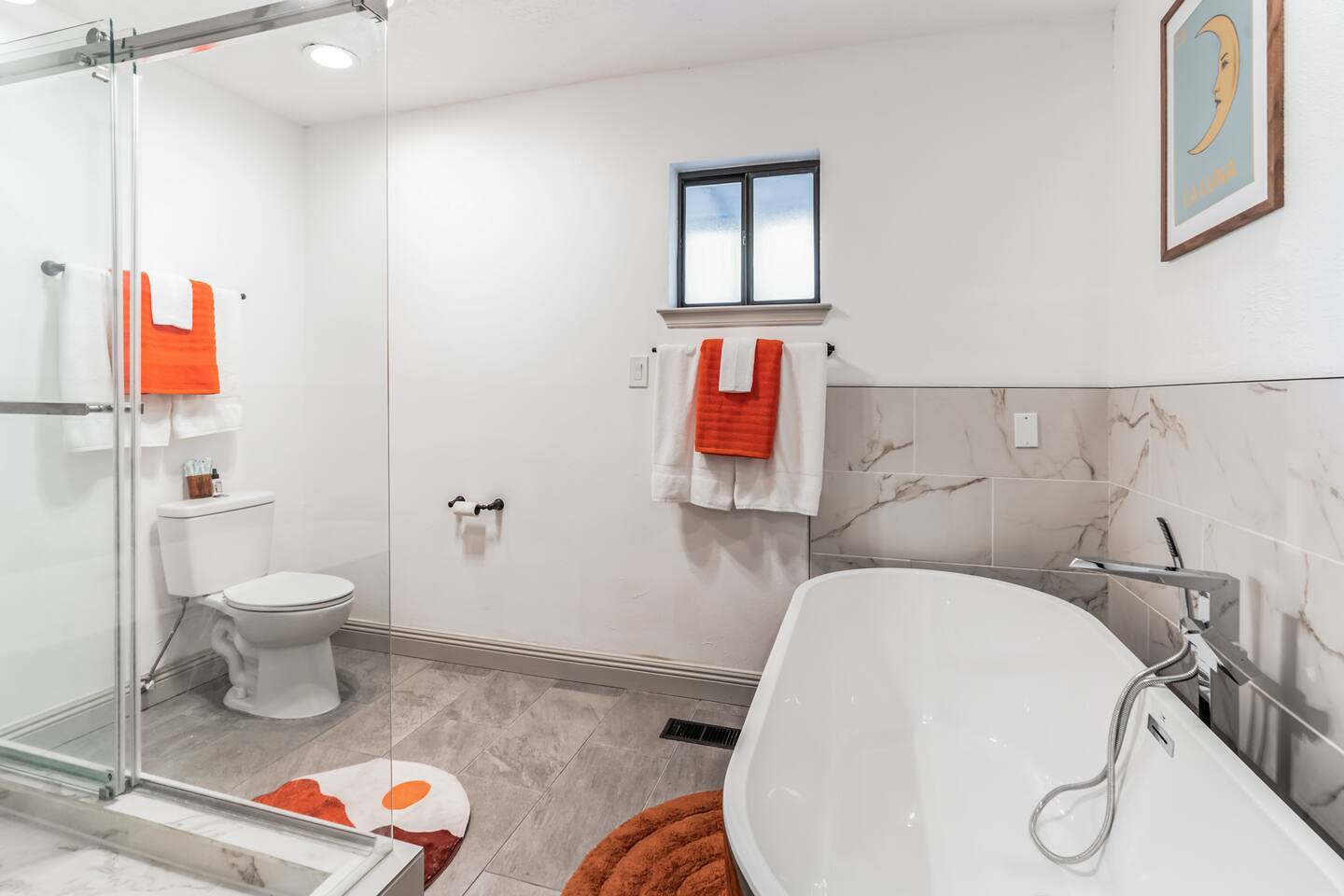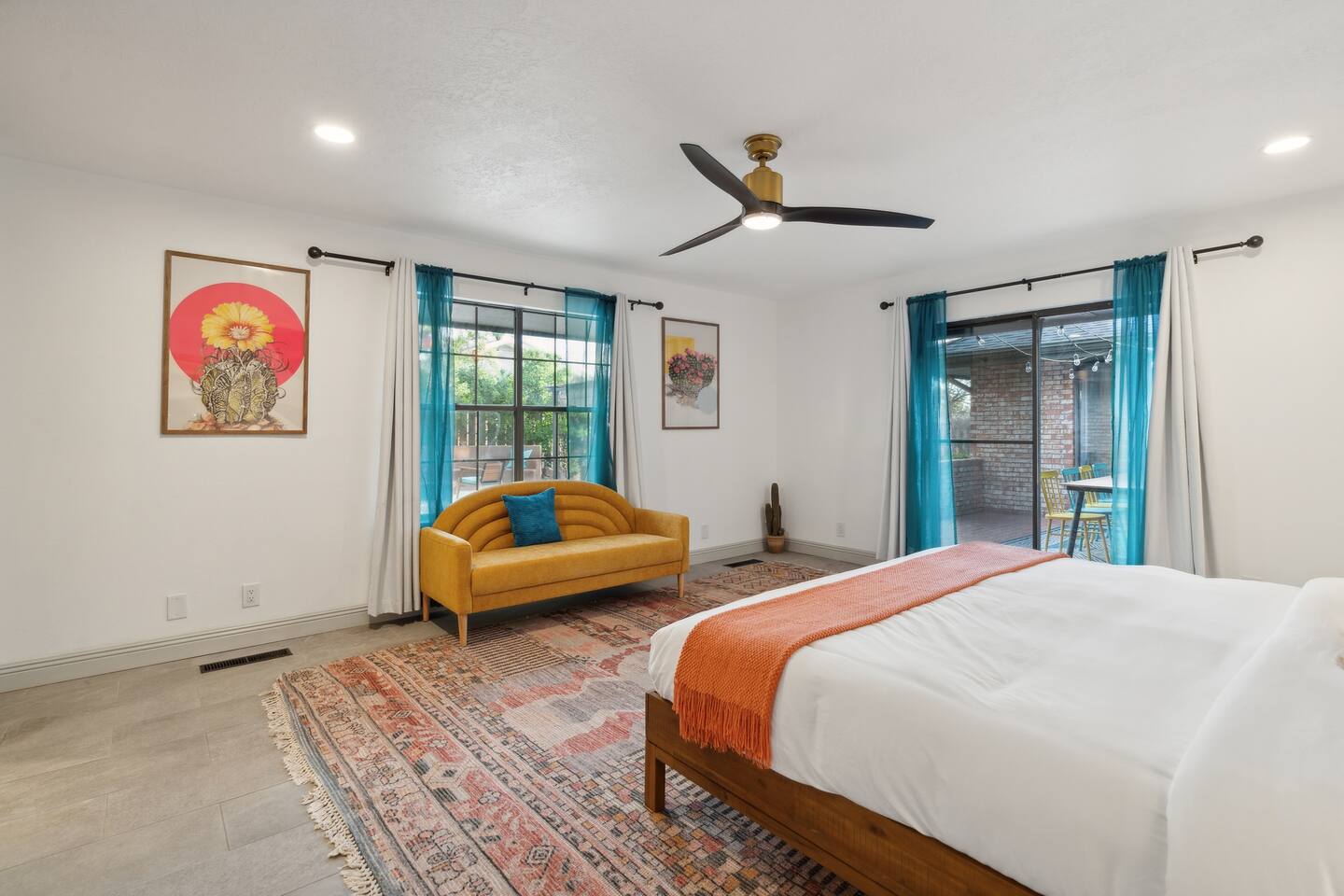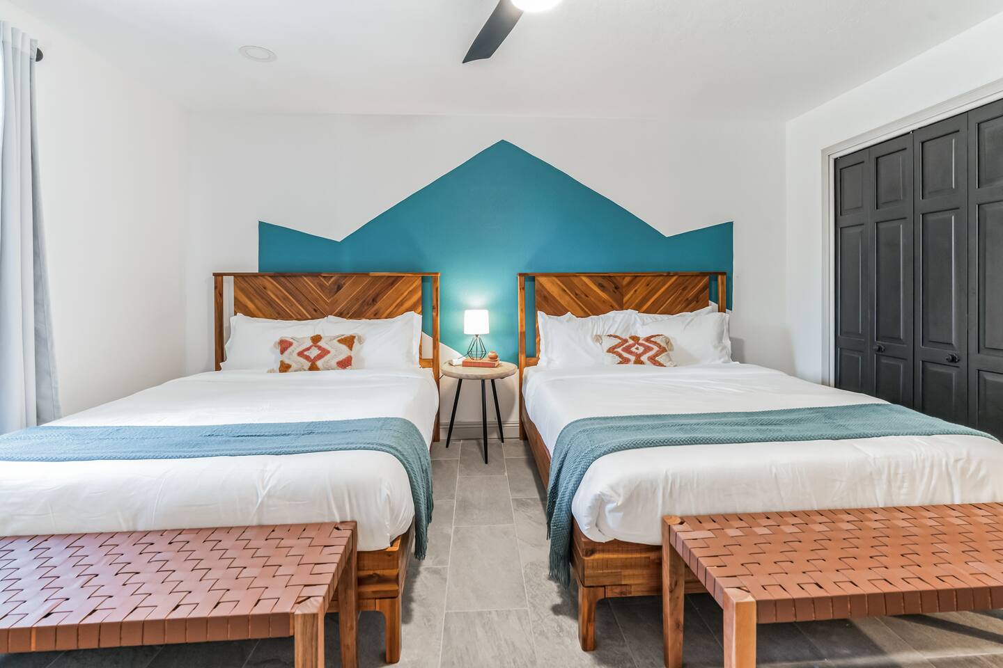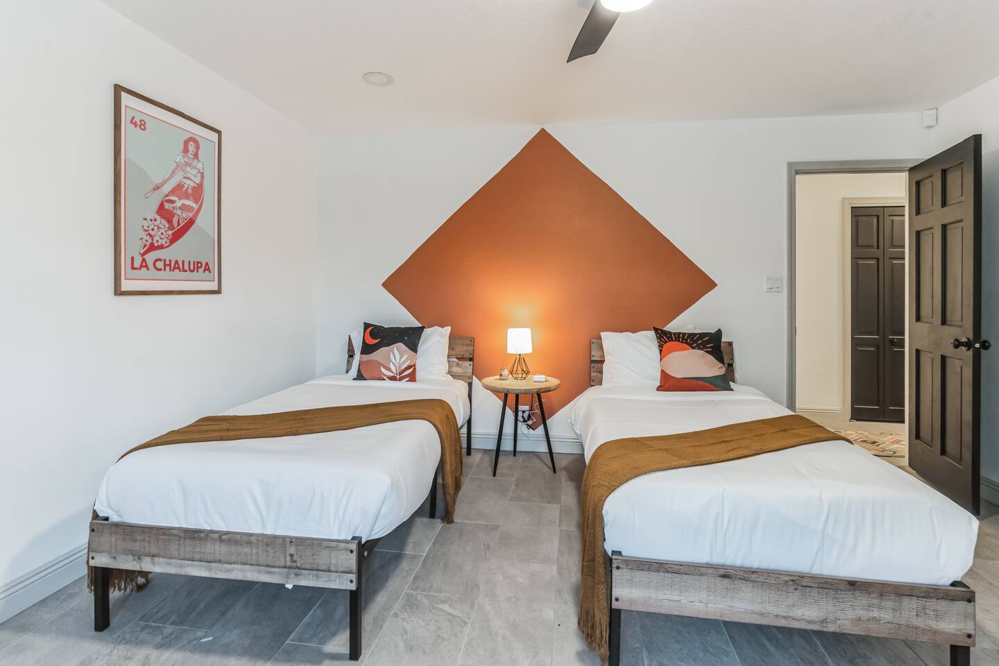 🛋️ Living Room Step into the vibrant charm of our New Mexico-inspired living room. Enjoy a stunning desert mural, a cozy blue sectional sofa, and elegant leather armchairs. With a smart TV, pool table, and ample natural light from large windows, this space is perfect for relaxation and creating memorable moments. 🍽️ Dining Room Savor meals in our cozy dining area featuring a round wooden table with stylish mustard chairs, perfect for intimate gatherings. Floor-to-ceiling glass doors provide ample natural light and views to the outside, enhancing the space. The room is decorated with a vibrant rug and colorful wall plates, adding artistic flair, while a blue built-in shelving unit displays chic decor. This inviting setting is ideal for both casual and formal dining. 🍳 Kitchen Cook with ease in our modern kitchen, boasting stainless steel appliances, elegant white cabinetry, and marble countertops. The open layout flows seamlessly into the dining area, making it perfect for entertaining. 🛌 Bedrooms Experience the luxury and sophistication of our four meticulously curated bedrooms, meticulously crafted to elevate your relaxation experience. ✦ Step into the first bedroom, where a lavish king-sized bed awaits beneath a captivating blue accent wall, inviting you into a realm of tranquility and indulgence. ✦ The second bedroom offers generous space with two king-sized beds, ensuring ample room and opulent comfort for your guests. ✦ In the third bedroom, discover the allure of two queen-sized beds, promising a restful haven for your nights. ✦ Lastly, the fourth bedroom caters to younger visitors with two snug twin beds, providing a cozy retreat after a day of exploration. Each room is a unique blend of contemporary design and vibrant hues, thoughtfully arranged to create an ambiance of warmth and rejuvenation, perfect for unwinding and revitalizing. 🛒 Grocery Stores ✦ Smith’s Food and Drug Address: 200 Tramway Blvd SE, Albuquerque, NM 87123 Distance: Approximately 1.3 miles away. ✦Sprouts Farmers Market - Four Hills Address: 13150 Central Ave. SE, Albuquerque, NM 87123 Distance: Approximately 1.5 miles away. ✦Sprouts Farmers Market - Montgomery Blvd. Address: Montgomery Blvd., Albuquerque, NM Distance: Approximately 3.5 miles away. 🍕 Restaurants ✦ MÁS Tapas y Vino - Located at 125 Second St NW, Albuquerque, approximately 4.5 miles away. This restaurant offers a selection of Spanish tapas and a cozy atmosphere. ✦ Carrie's at The Clyde - Situated at 625 Silver Ave SW, Albuquerque, about 5 miles from your location. It features a Southwest-inspired menu in a setting that harks back to a bygone era of dining. ✦ Seasons 52 - Albuquerque - Found at 6600 Menaul Blvd NE, Albuquerque, roughly 4.8 miles away. This restaurant is known for its seasonal menu that emphasizes fresh, natural ingredients. 🎢 Attractions ✦ Old Town Albuquerque (Approx. 15 min drive): Explore the historic heart of the city with adobe buildings, shops, galleries, and restaurants. Perfect for a stroll and soaking in New Mexican culture. ✦ Sandia Peak Tramway (Approx. 25 min drive): Take a breathtaking tram ride up to Sandia Peak for stunning views, hiking trails, and a restaurant at the summit. ✦ ABQ BioPark (Approx. 20 min drive): Enjoy a visit to the BioPark, including the Zoo, Aquarium, and Botanic Garden. A fun, educational experience for all ages. ✦ Hot Air Balloon Ride (Approx. 30 min drive): Experience Albuquerque’s famous hot air balloon rides, offering a magical sunrise journey over the Rio Grande Valley. ✦ Indian Pueblo Cultural Center (Approx. 15 min drive): Delve into the history and culture of New Mexico’s Pueblo people through exhibits, traditional dances, and workshops. ✦ Explore Science Center and Children's Museum (Approx. 20 min drive): Perfect for families, this interactive museum offers hands-on exhibits focused on science and learning. ✦ Shopping at Nob Hill (Approx. 15 min drive): Visit this trendy neighborhood filled with unique shops, boutiques, and cafes—ideal for finding one-of-a-kind souvenirs. ✦ The National Museum of Nuclear Science & History (pprox. 10 mins drive): This museum offers interactive exhibits and educational programs about the history and science of nuclear energy and its uses. ✦ Tingley Beach (Approx. 20 min drive): Enjoy outdoor time with several fishing lakes, walking paths, and picnic areas for a relaxing day out.