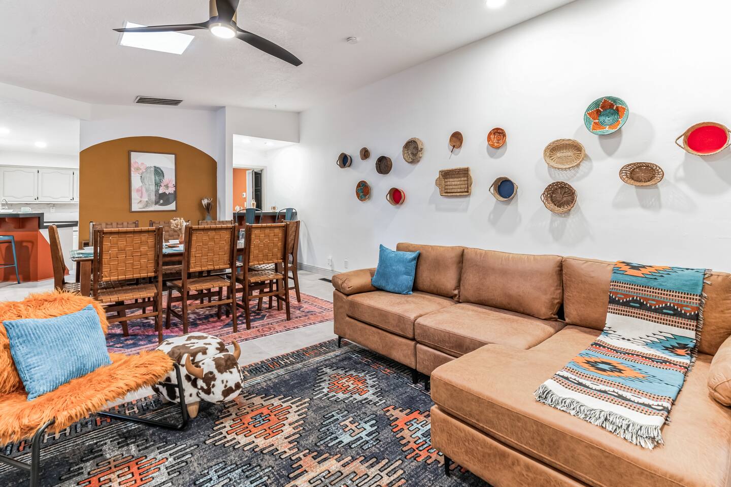 Welcome to your Albuquerque retreat! Located in a safe and serene neighborhood, our home features a spacious backyard with plenty of amenities, perfect for relaxation and gatherings. Inside, enjoy an insta-worthy interior with vibrant Southwestern decor and cozy, stylish spaces. Whether you’re lounging in the living room or dining in the chic area, this home offers the perfect blend of comfort and charm. Book now for a stay that combines safety, style, and relaxation!
